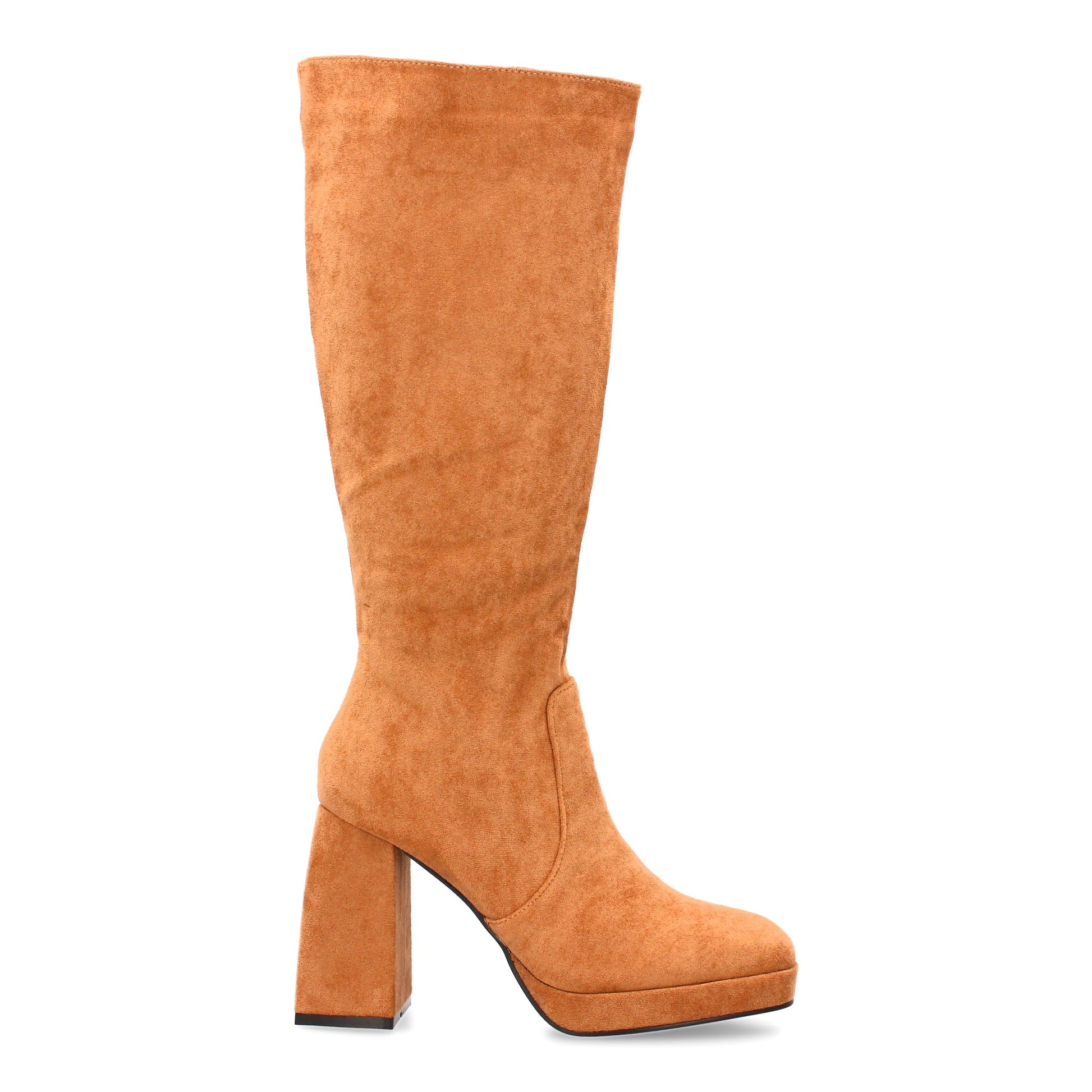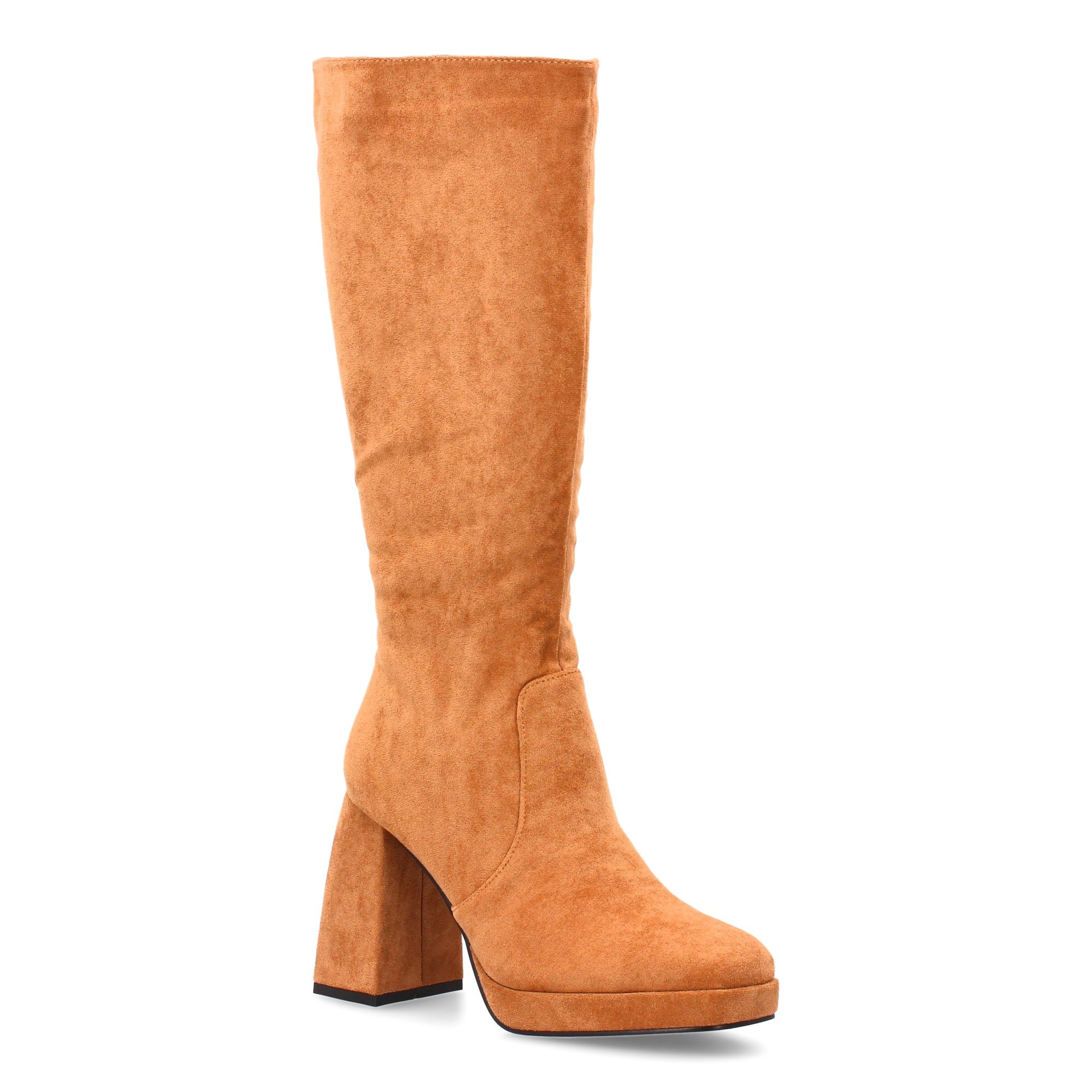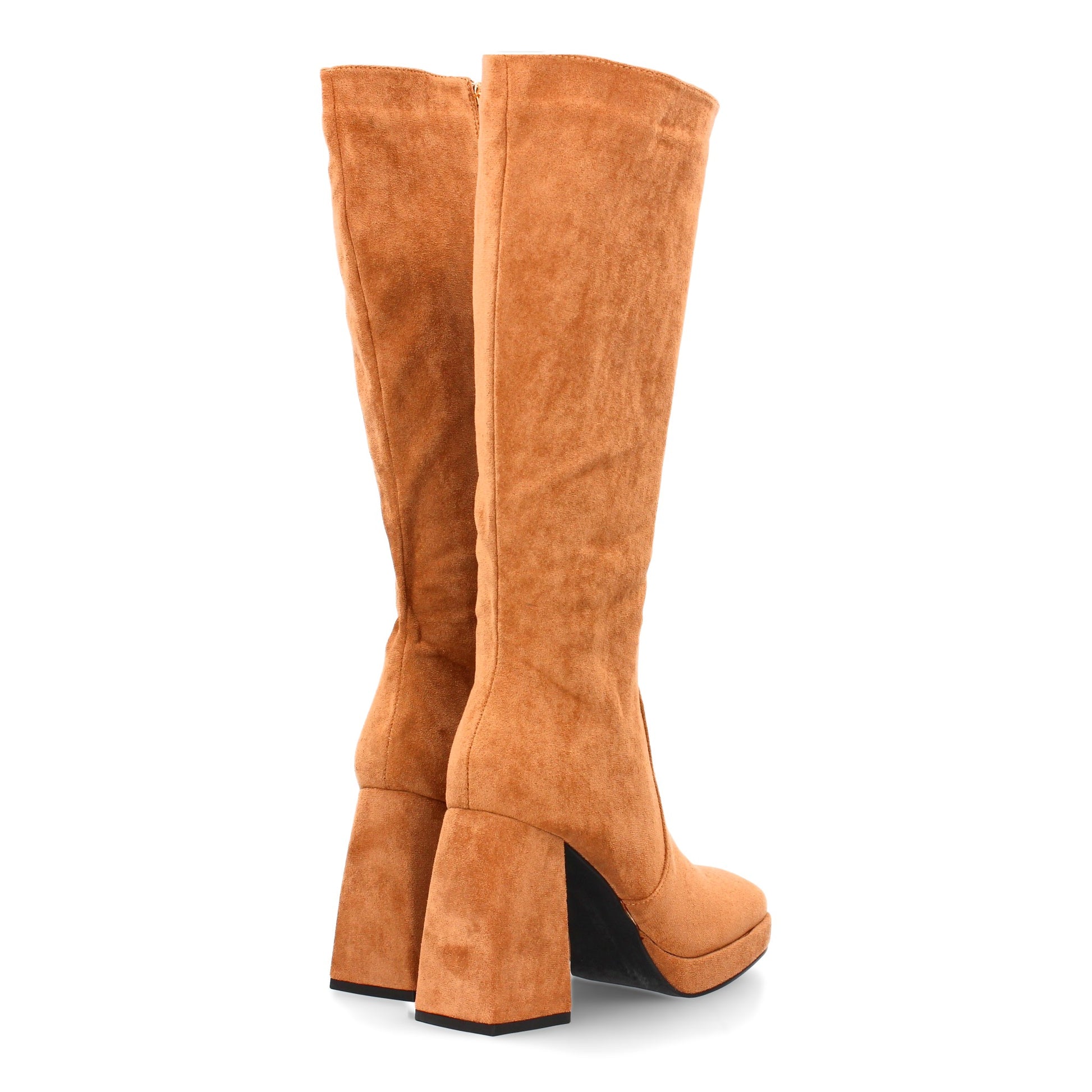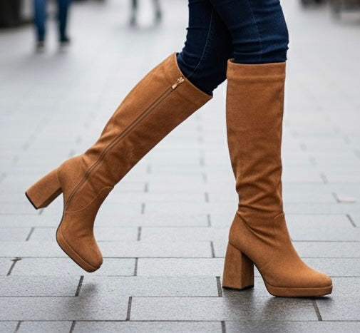 Bota alta con plataforma y tacón ancho cierre de cremallera. Tacón cuadrado comodo. Estampado liso para la temporada Otoño Invierno. Ideal para mujer.