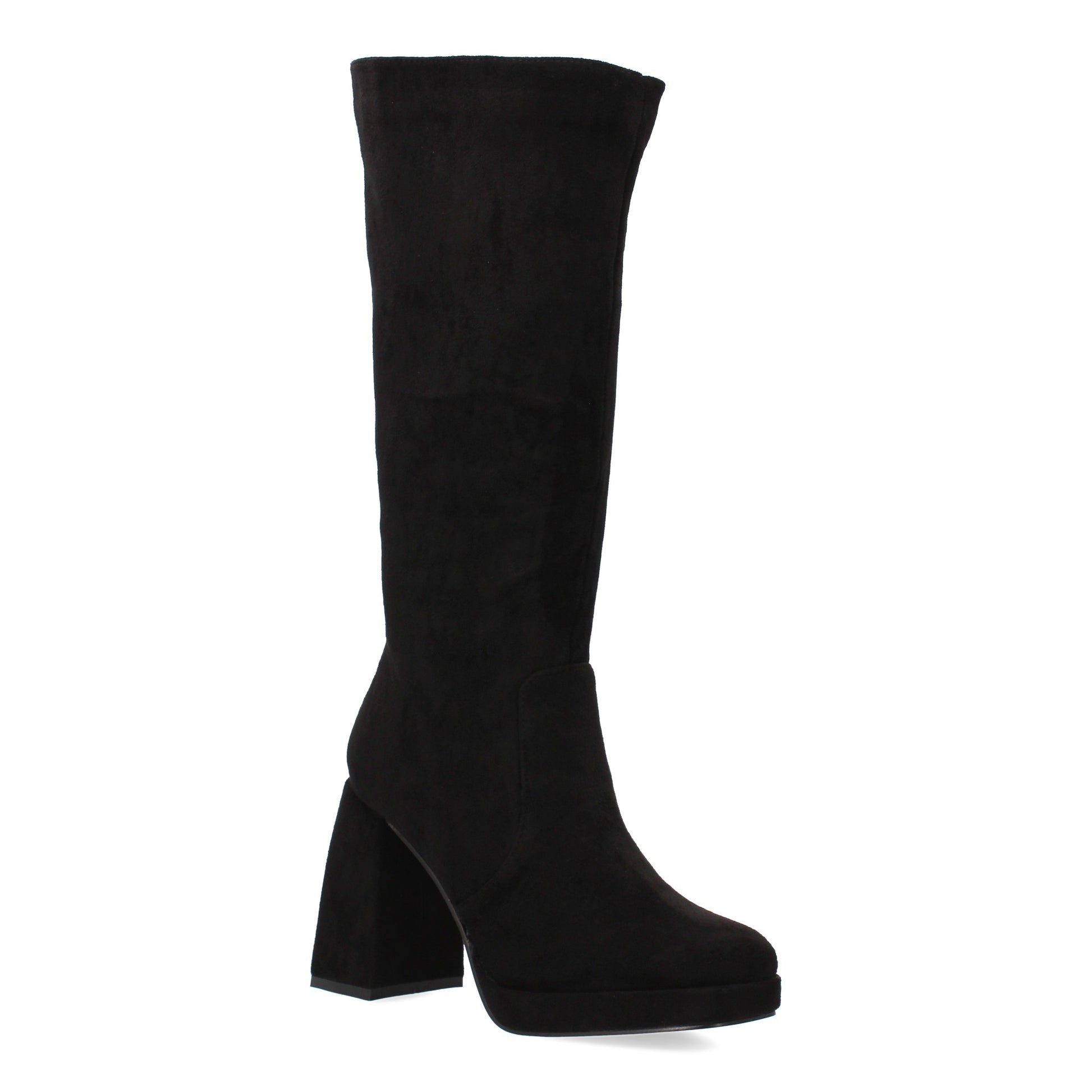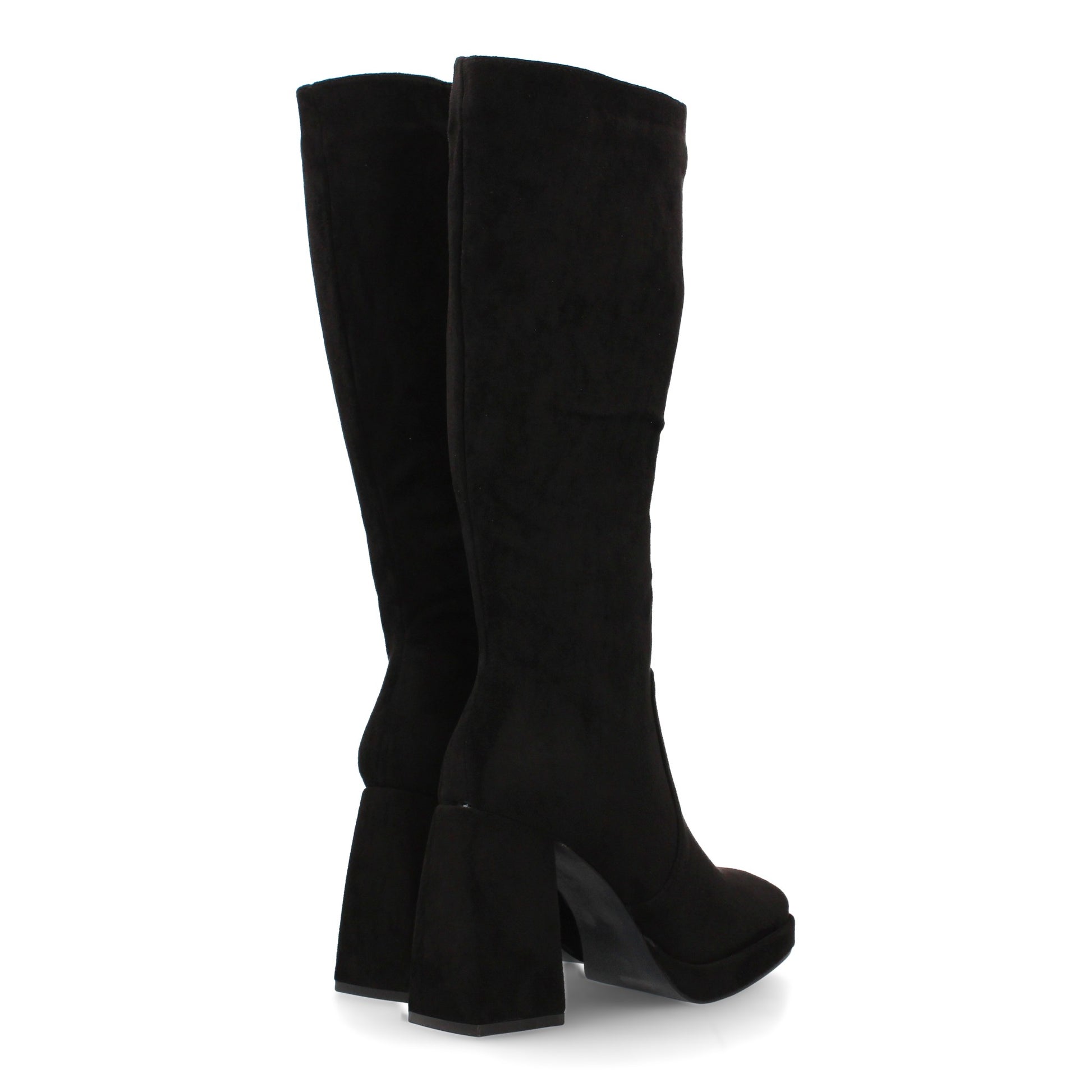 Bota alta con plataforma y tacón ancho cierre de cremallera. Tacón cuadrado comodo. Estampado liso para la temporada Otoño Invierno. Ideal para mujer.