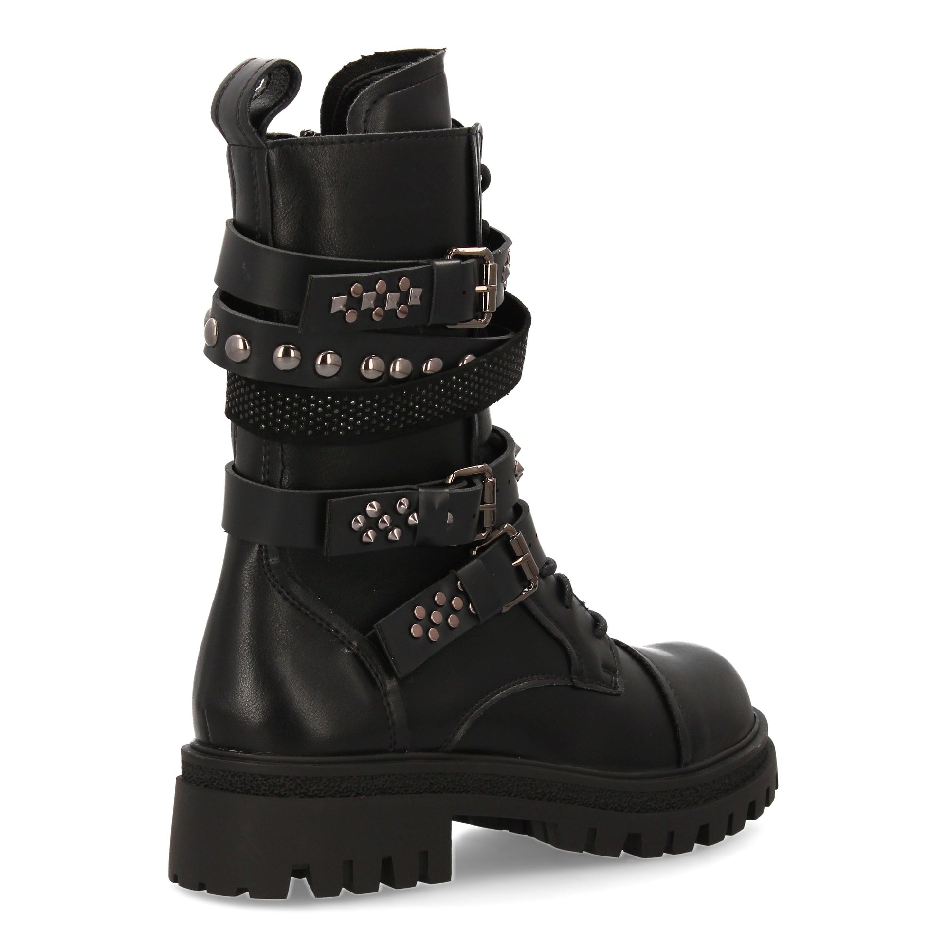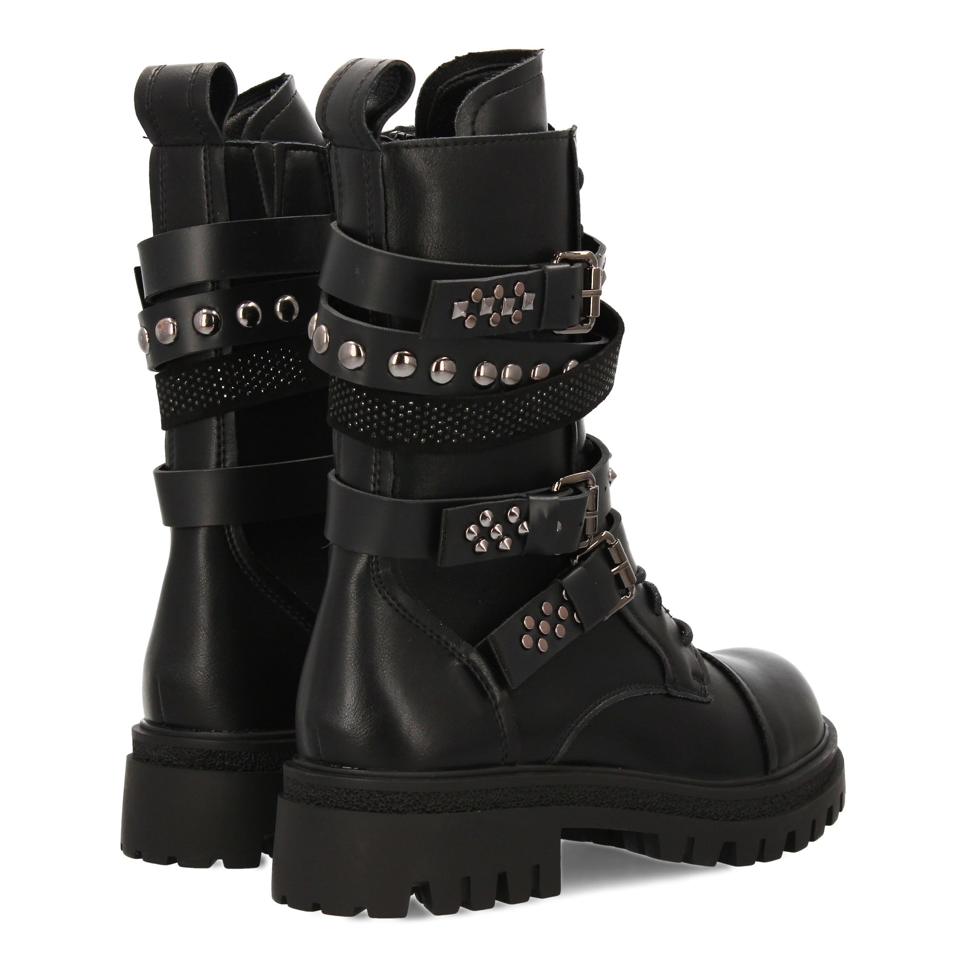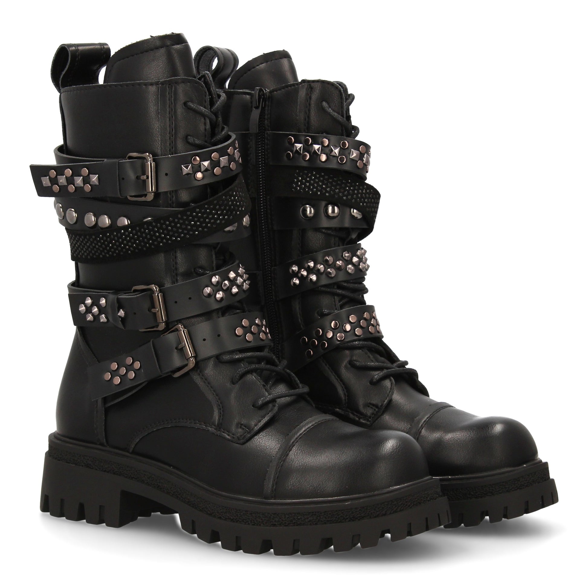 Estas botas de estilo militar diseño robusto múltiples correas con hebillas metálicas y plataforma. Suela dentada gruesa ideal para mujer temporada otoño invierno.