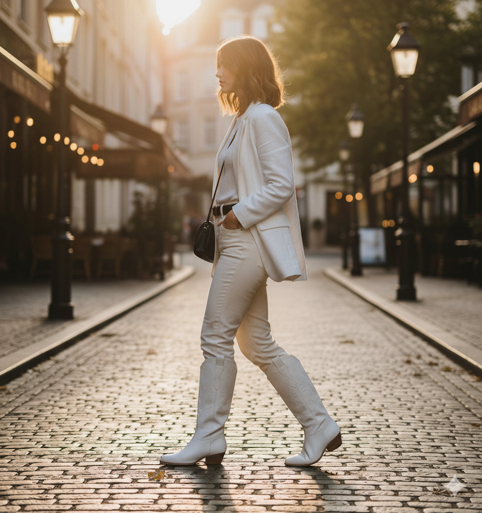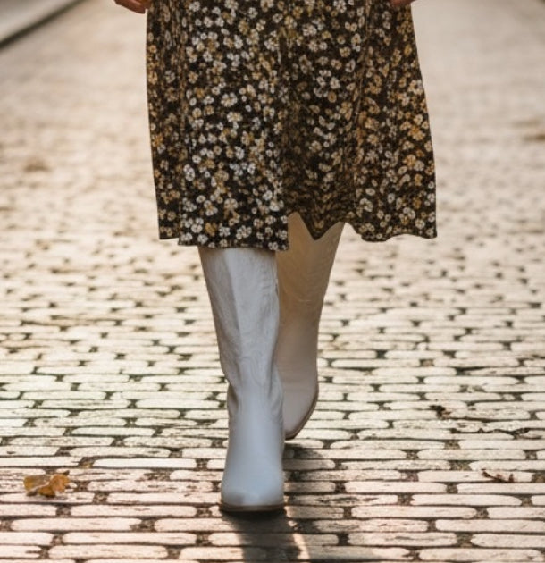 Bota cowboy de caña alta con bordados decorativos y tacón bajo comodo. Diseño clásico de punta fina cierre de cremallera ideal para mujer temporada Otoño invierno