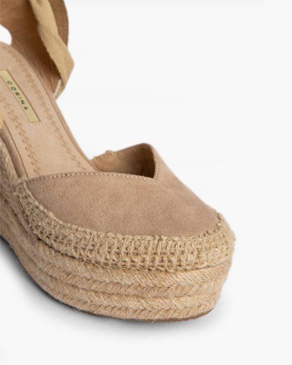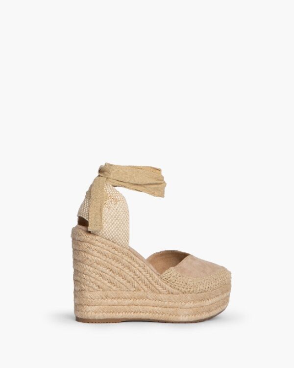 Redefine tu armario con la sofisticación y el confort de nuestra plataforma valenciana con corte en pico. La cuña en yute se combina con la suavidad del material tipo antelina, ofreciendo un calzado que captura la mirada y acaricia el pie. El detalle de trenzado en la parte delantera añade una dimensión artesanal, mientras que las tiras anudadas al tobillo garantizan un ajuste perfecto y añaden un toque bohemio. Con una altura de tacón de 11 cm y una plataforma de 4 cm, estos zapatos son el epítome de la moda consciente, proporcionando una elevación impresionante junto con comodidad. ✨👡