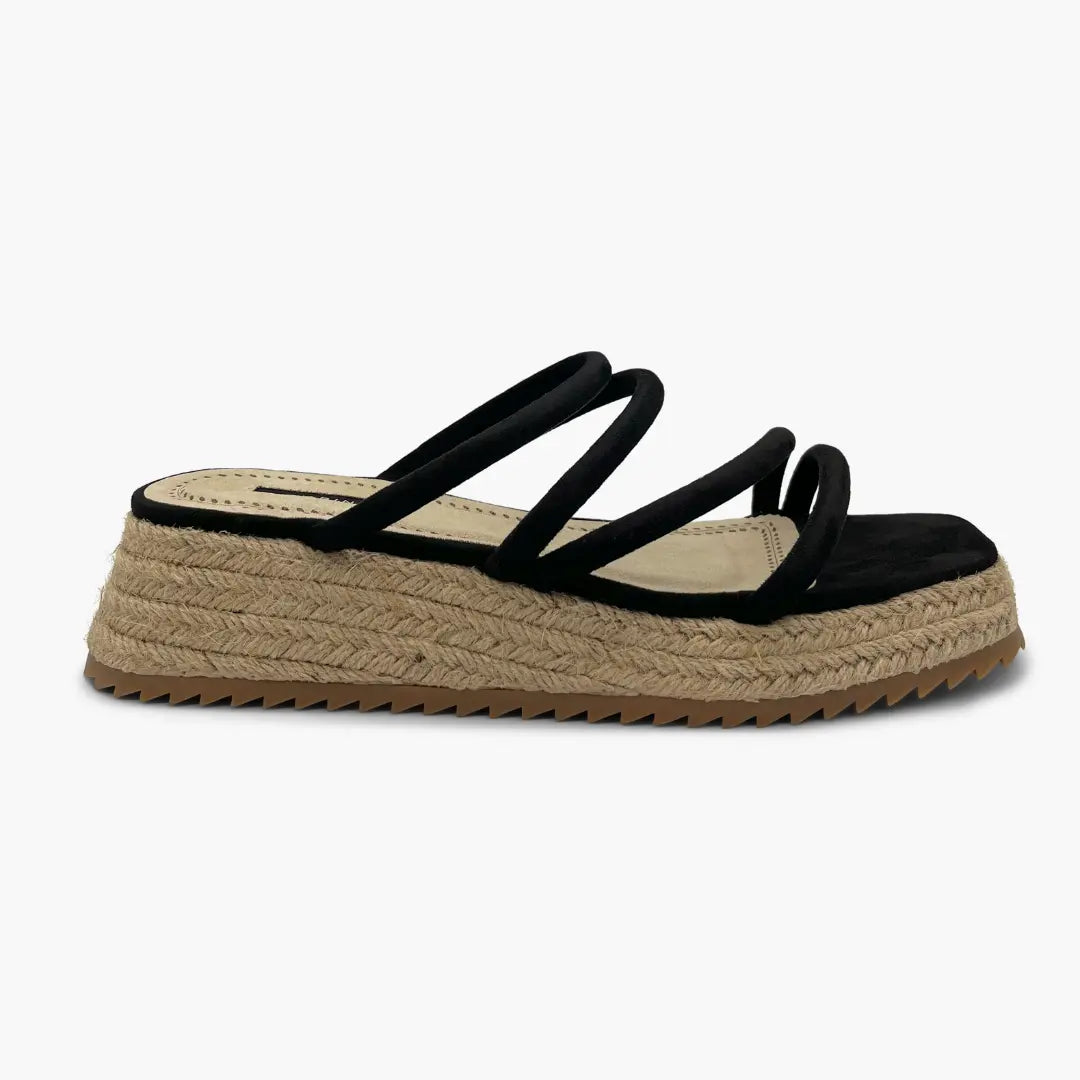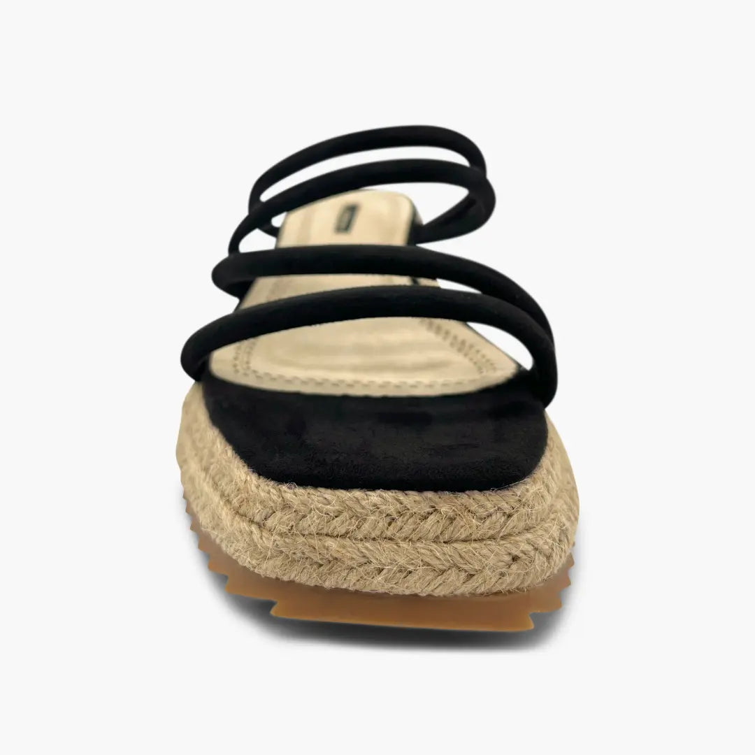 No lo dudes más y añade estas encantadoras Sandalias Negras con Suela de Esparto y Tiras Entrelazadas a tu colección de calzado veraniego.